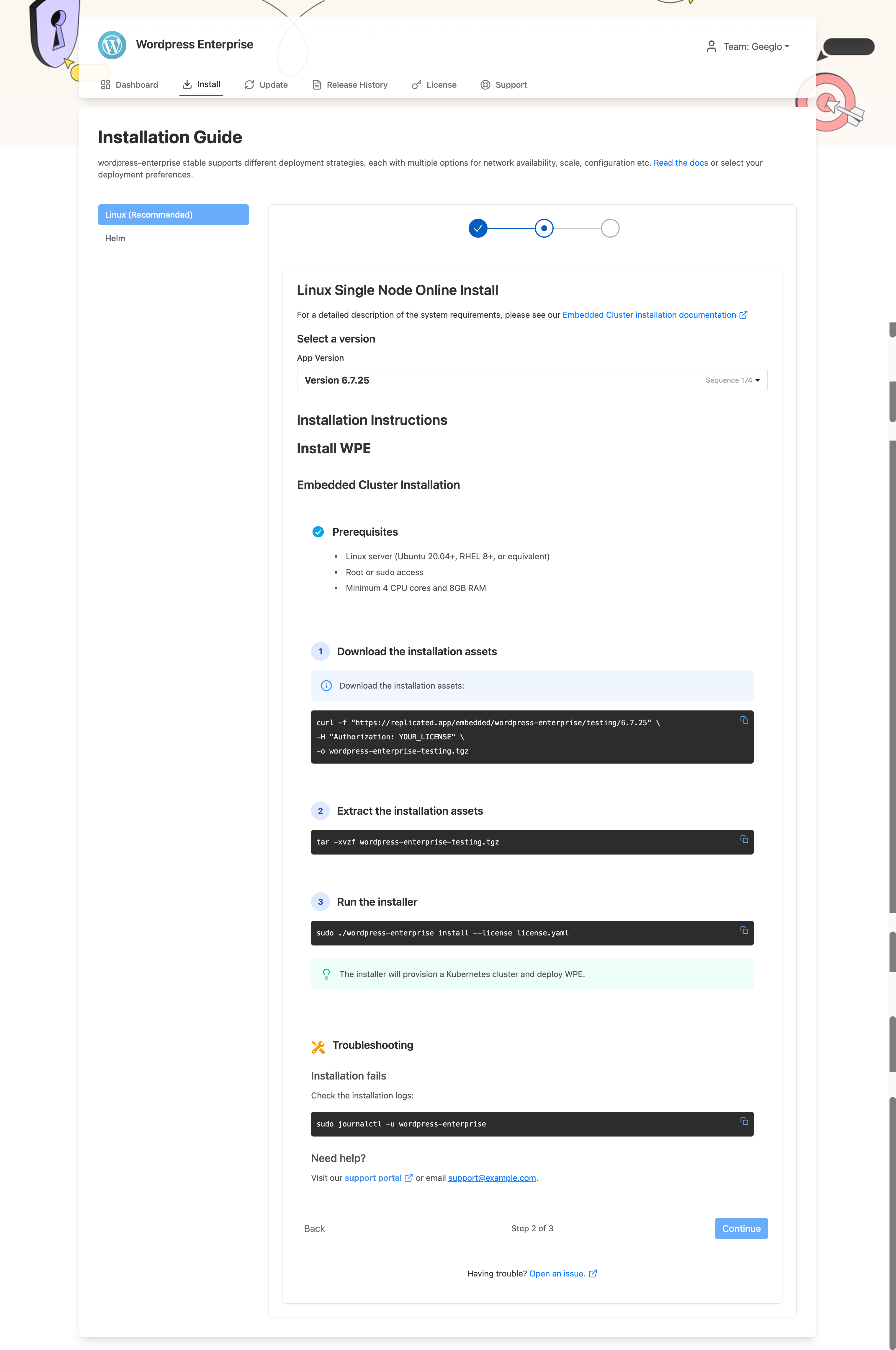 Custom install instructions are Alpha and subject to change. To access this feature, a feature flag must be enabled for your team. For more information, reach out to your Replicated account representative.